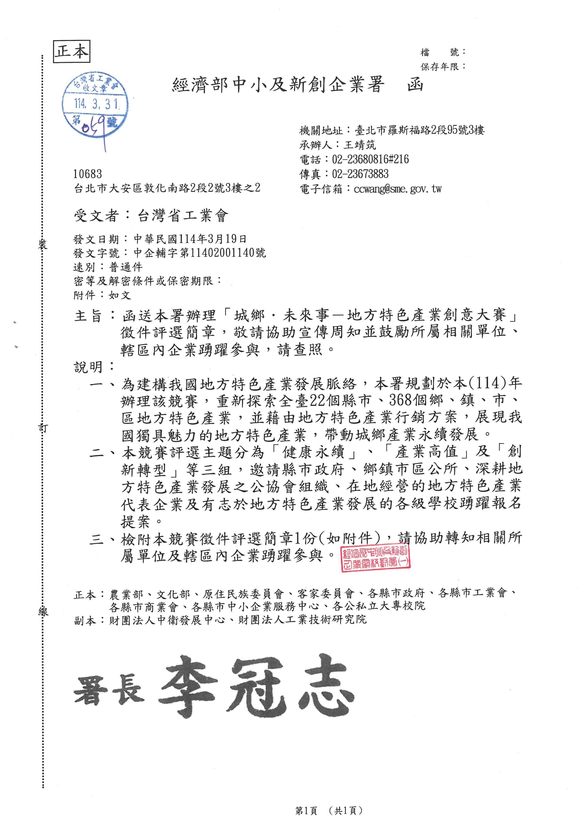 「城鄉.未來事—地方特色產業創意大賽」簡章:https://www.lohas-go.com.tw/lohasgo/templates/web_style/lohasgo2024/color_1/images/368_future.pdf